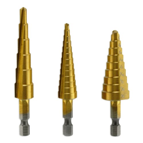 - Pro-Grade TITANIUM 3-Piece Step Drill Bit Set - 28...