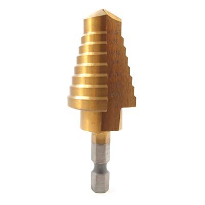 Now the prices down even more urgent look at all the other check prices before the end of time.1/4" Hex Shank Titanium Step Drill Bit - 8 Steps From 9/16" To 1" Specification