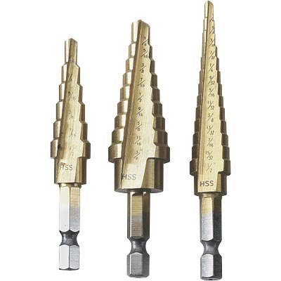 - Grip 3 Piece Titanium Step Drill Bit Set