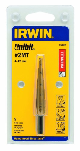 Now the prices down even more urgent look at all the other check prices before the end of time.Irwin 16102 Unibit2MT Titanium Nitrate Coated 4-Millimeter to 12-Millimeter by 1/4-Inch Shank Step Drill Bit Features